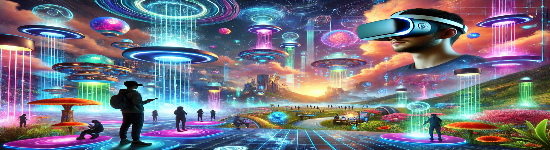 Players in VR of a beautifully crafted digital world