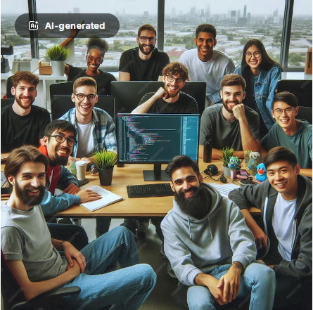 A friendly photo of the team of game developers, capturing a welcoming and approachable brand vibe.